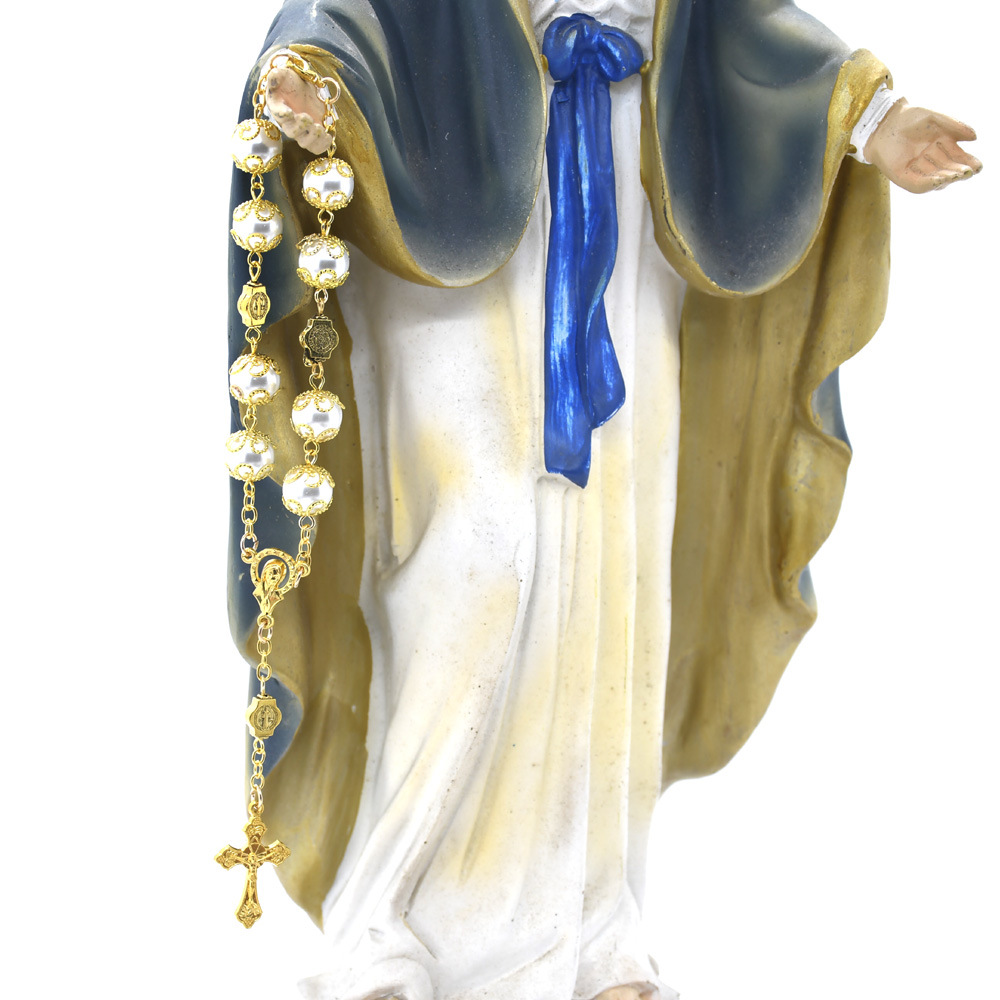 跨境貨源十字架串珠手鏈金色花邊玻璃仿珍珠玫瑰經(jīng)念珠手鏈