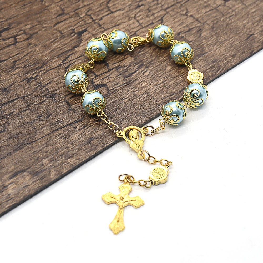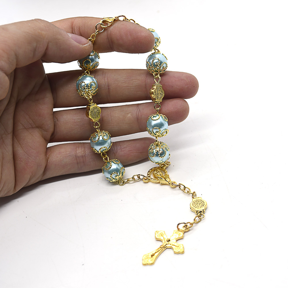 (金色)車掛十字珠念珠洗禮珠十字架手鏈Rosary bracelet