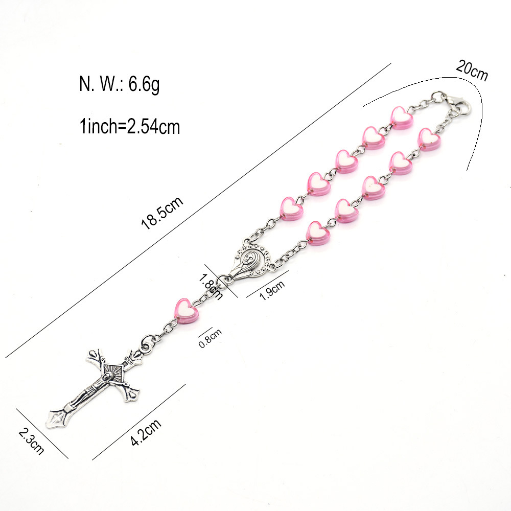 亞馬遜貨源 十字架洗禮珠粉色愛心念珠手鏈?zhǔn)执槎Y活動禮品