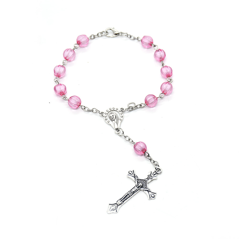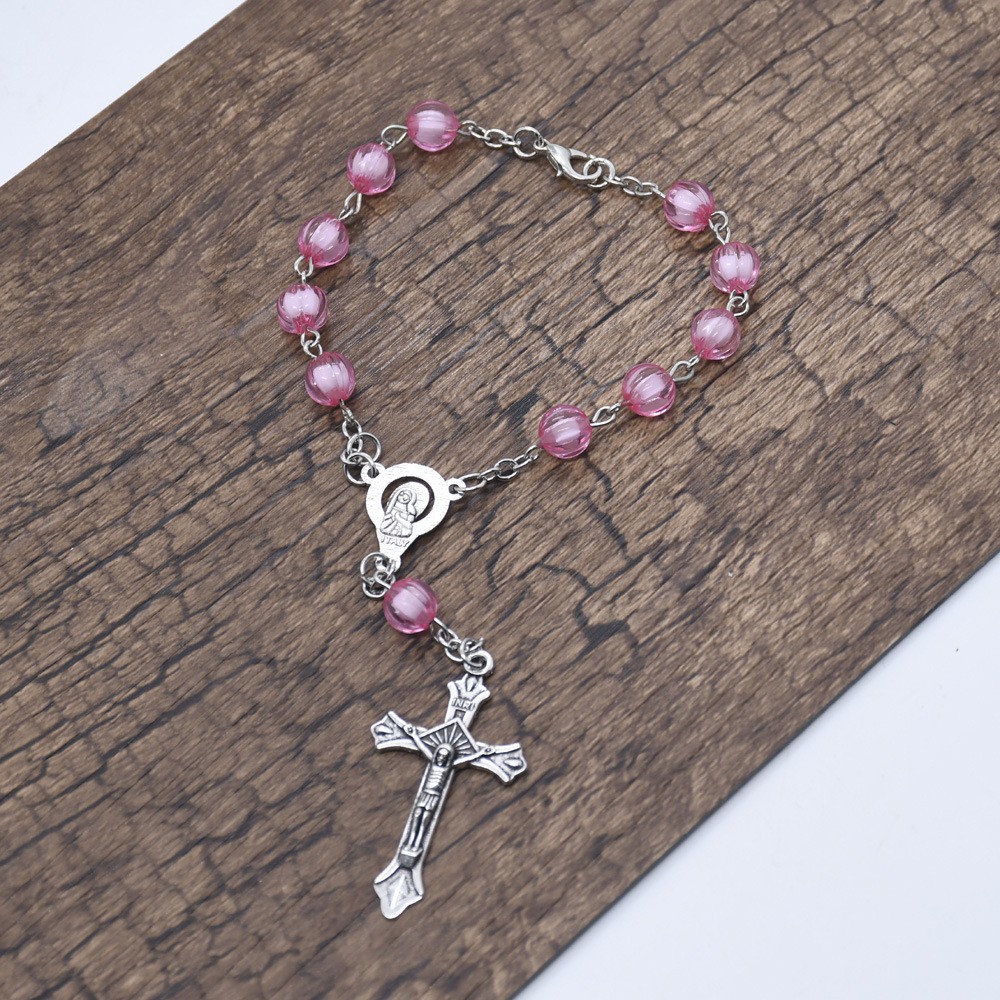 粉色念珠手鏈珠中珠禮活動(dòng)十字架洗禮珠