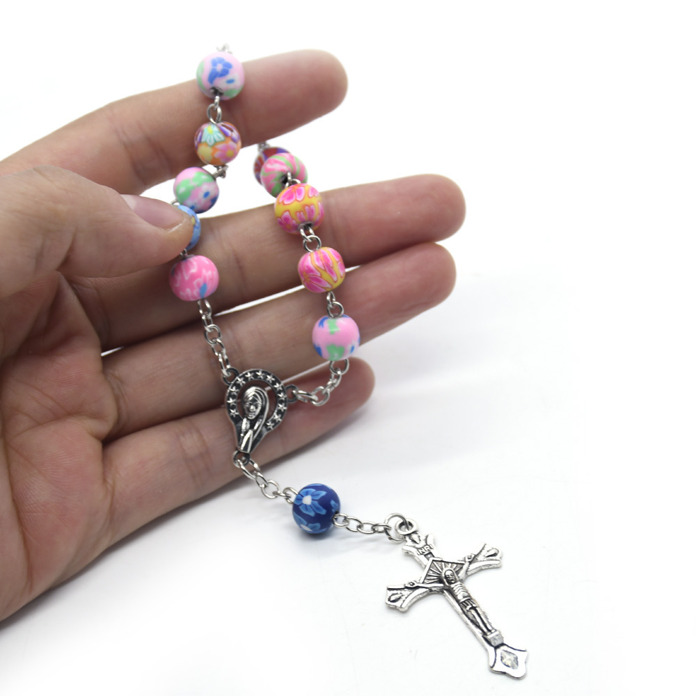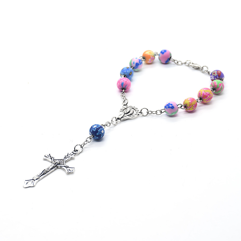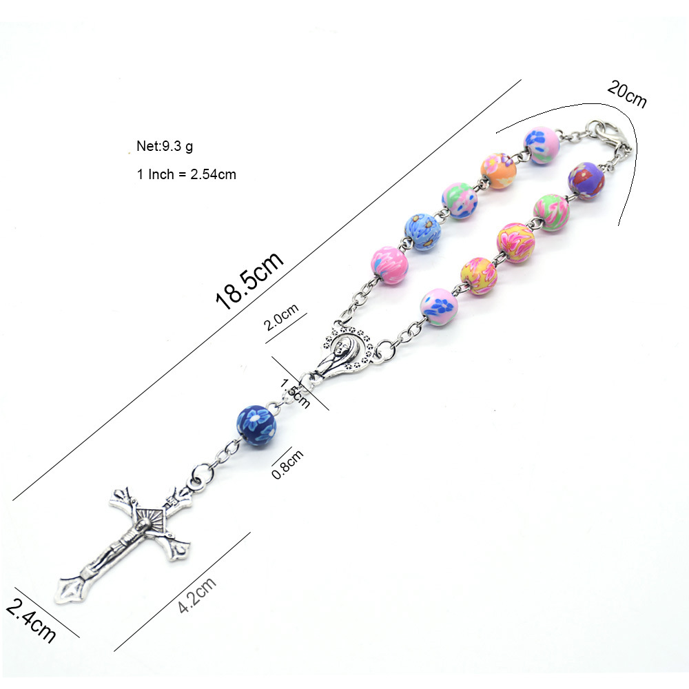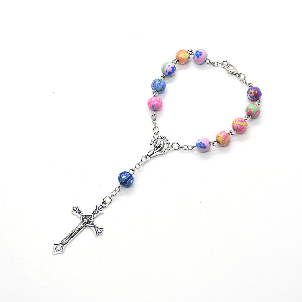 外貿(mào)新款貨源念珠手鏈彩軟陶珠十字架洗禮珠