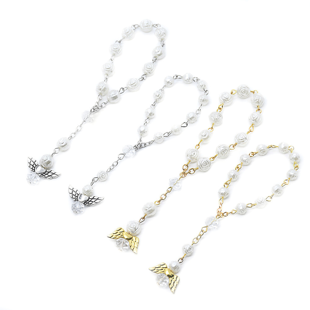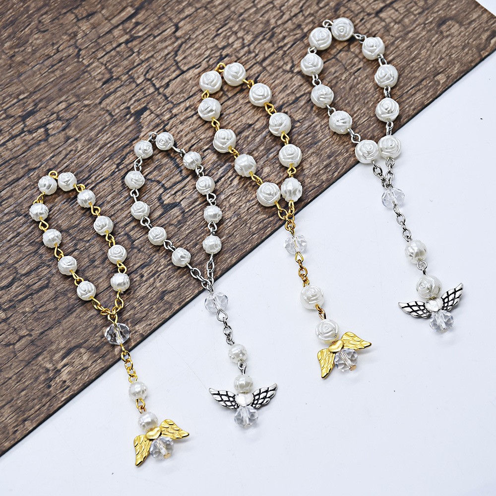 天使翅膀洗禮珠念珠手鏈玫瑰花婚禮愛心手串祈禱珠禮品贈品