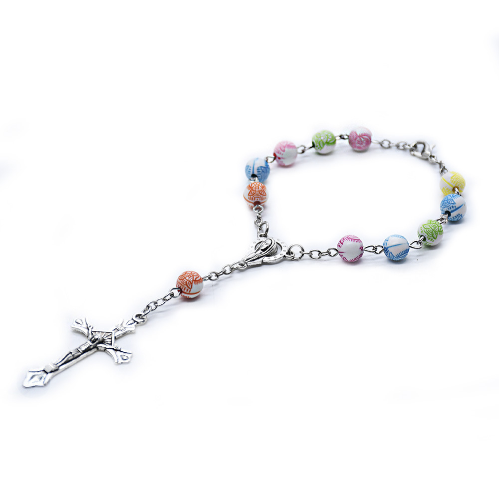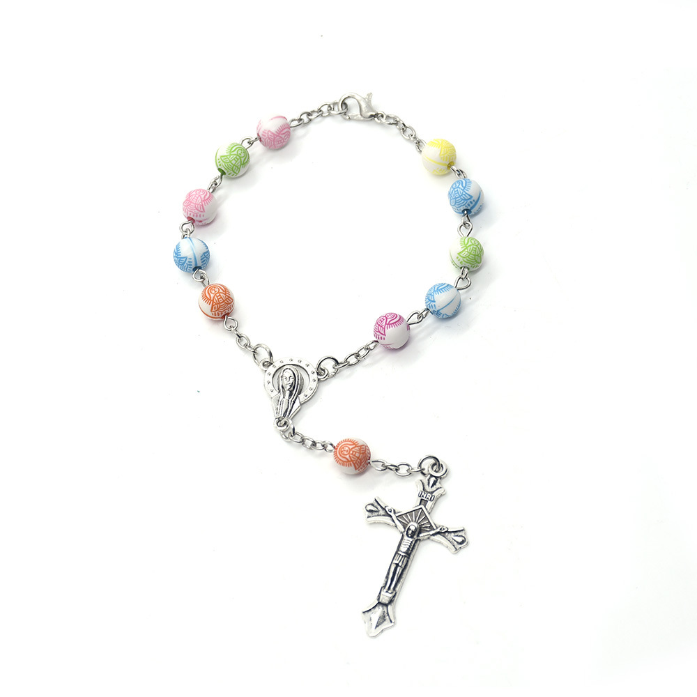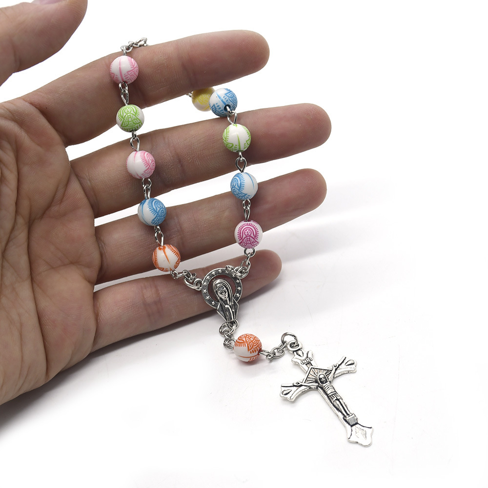 十字架手鏈手工玫瑰念珠手鏈彩色軟陶兒童十字架祈禱珠Rosary