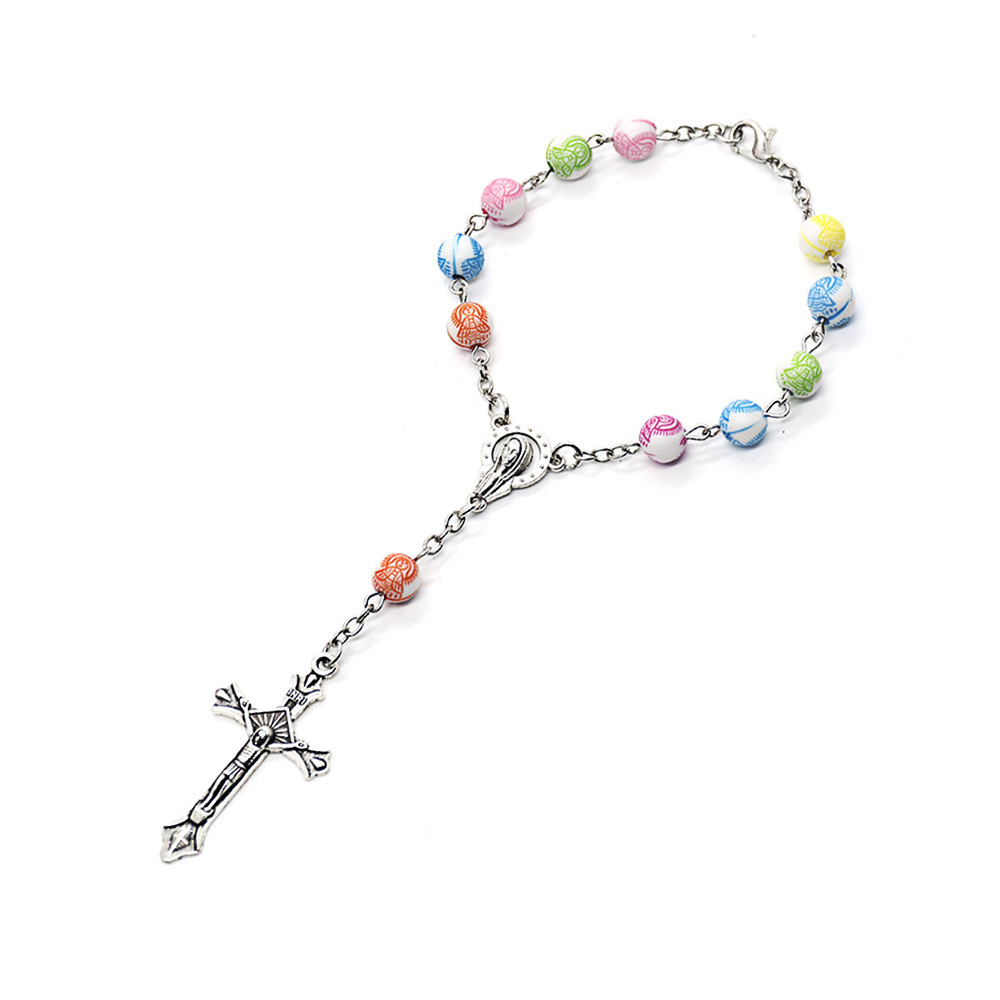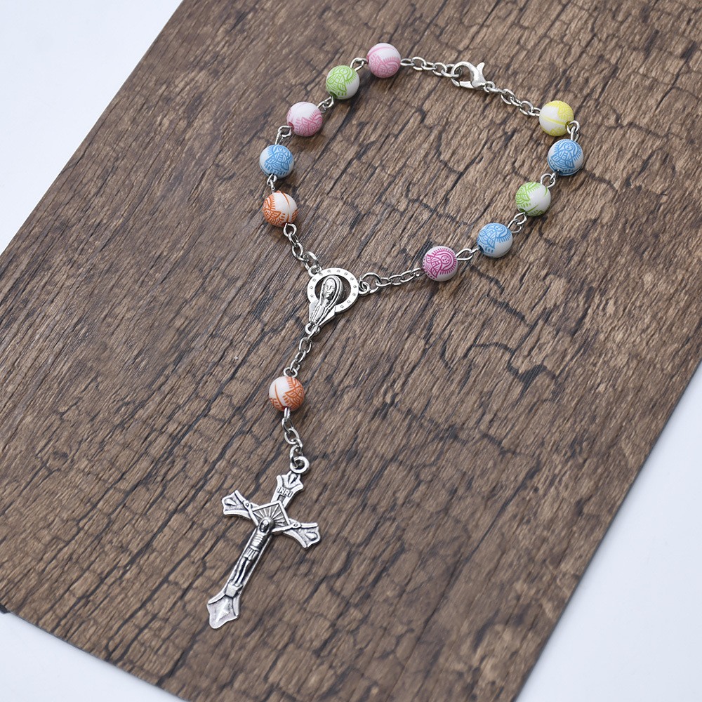 念珠手鏈十字架圣母圣像手串祈禱珠十字架手鏈彩色兒童