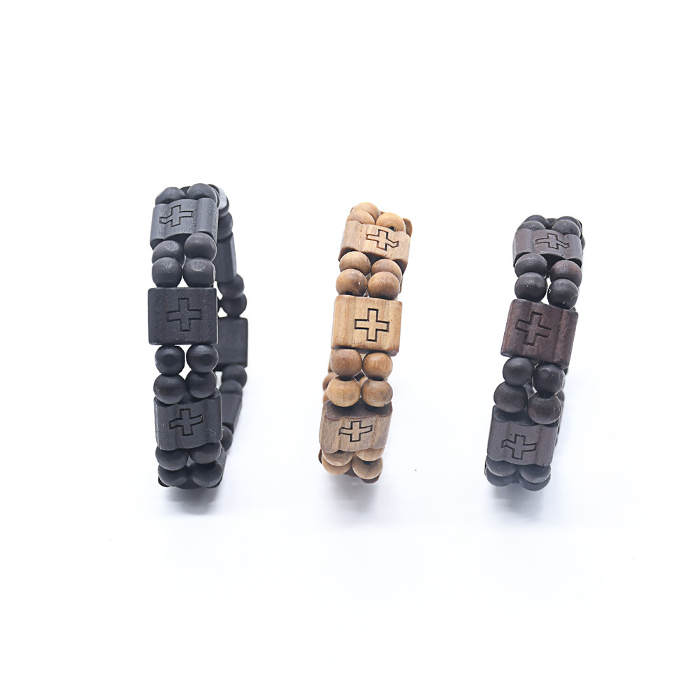 外貿出口孔雀石十字架手鏈圣心手串彈力繞繩手環(huán) Maria bracelet